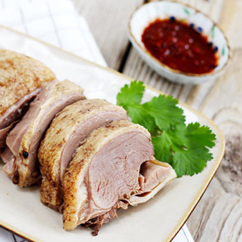 6、将锅离火,自然冷却后,将鸭子斩件即可食用。