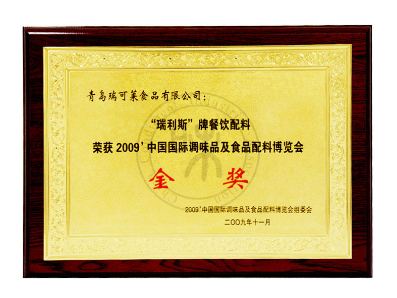 “瑞利斯”牌餐饮配料荣获2009中国国际调味品及食品配料博览会金奖