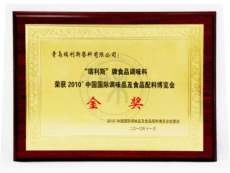 “瑞利斯”牌食品调味料荣获2010中国国际调味品及食品配料博览会金奖