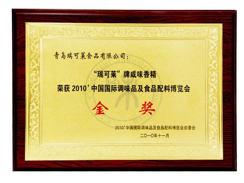 “瑞可莱”牌咸味香精荣获2010中国国际调味品及食品配料博览会金奖