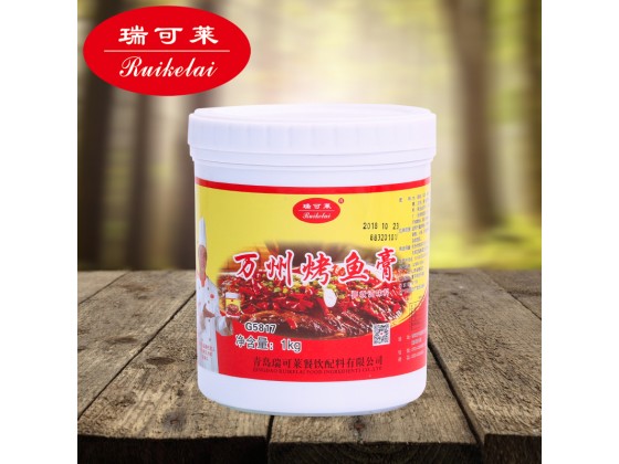 2、加入25克瑞可莱”万州烤鱼飘香膏或“瑞利斯”烤鱼飘香膏,适量料酒、食盐、自制剁椒,盖上保鲜膜放入冰箱冷藏2个小时间。