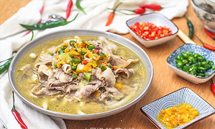 骨髓浸膏、小绿尖椒2根、葱1根、小红尖椒1小把、黄金剁椒1小勺